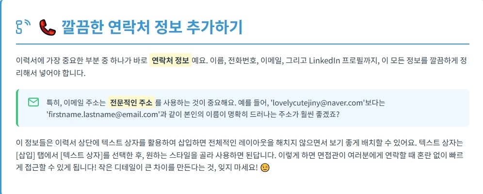특히, 이메일 주소는 전문적인 주소를 사용하는 것이 중요해요.