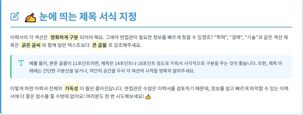 이렇게 하면 이력서 전체의 가독성이