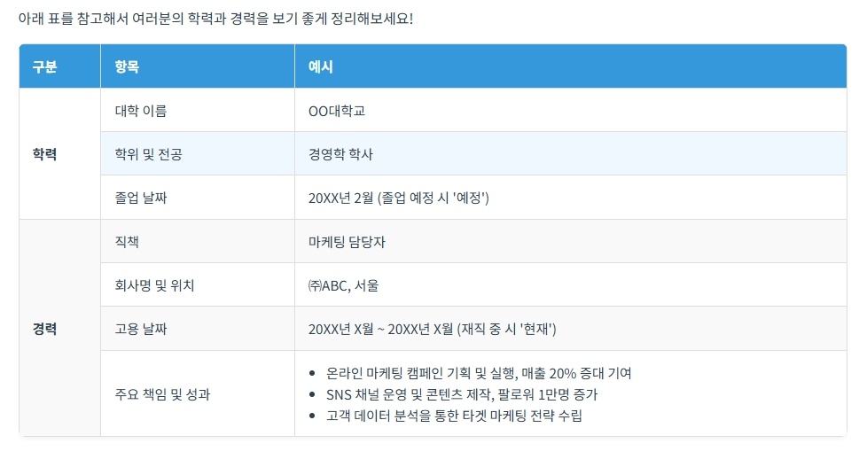 이력서에서 빼놓을 수 없는 중요한 부분이죠!