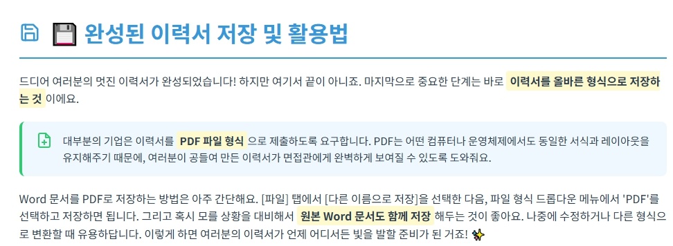 - 완성된 이력서 저장 및 활용법 💾